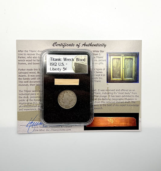 Titanic Wreck Wood with a 1912 U.S. Liberty Head V Nickel