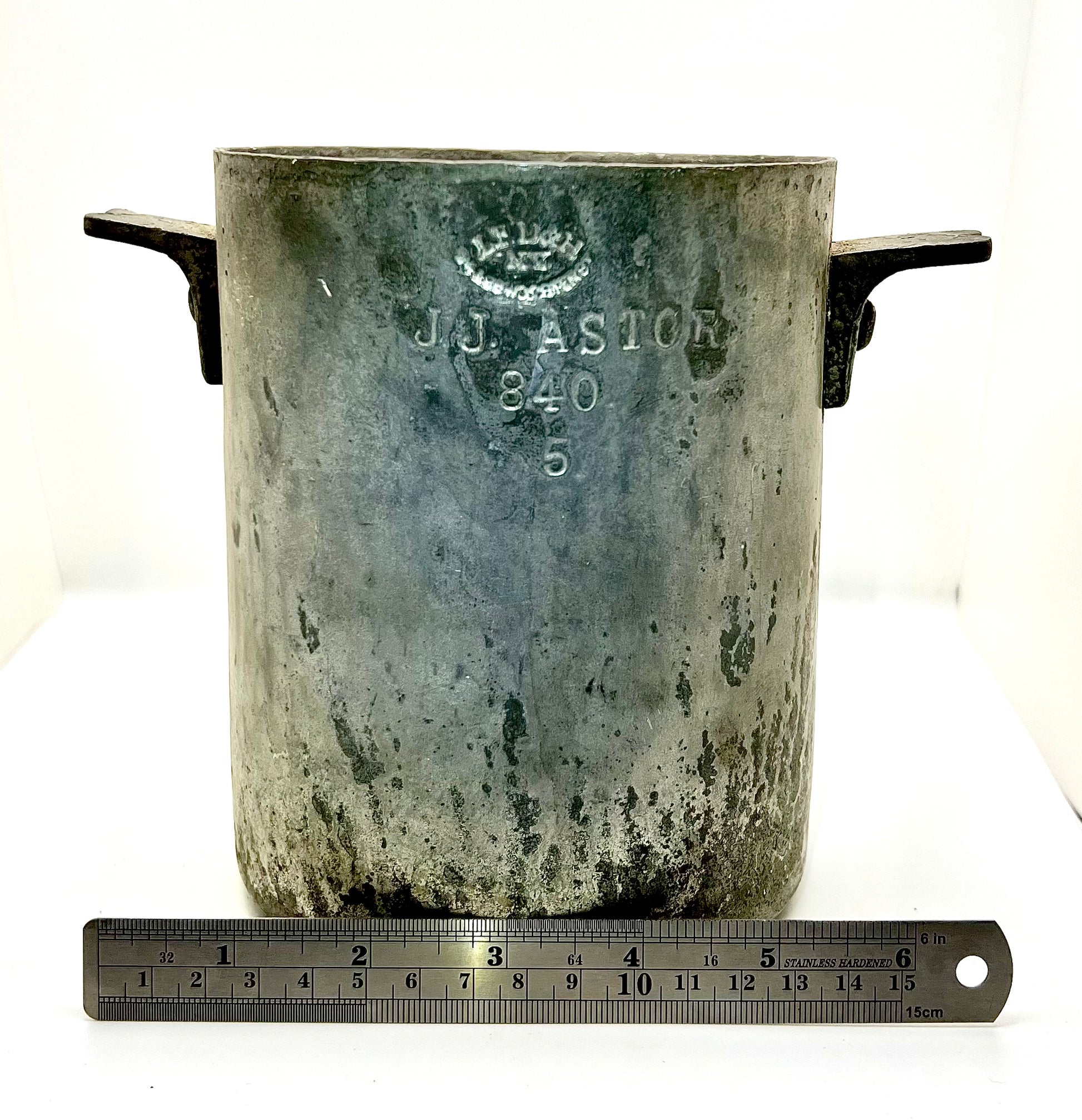 SOLD! John Jacob Astor IV personally owned cooking pot (1 of 3, small size) with name stamp.